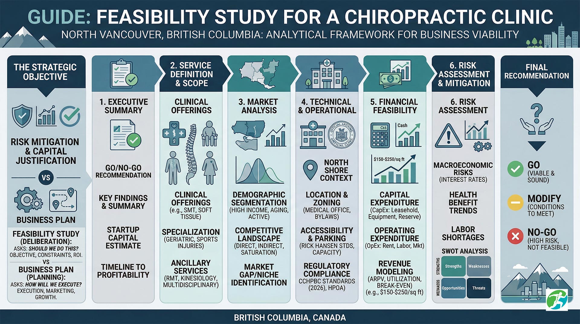 A feasibility study for a chiropractic clinic in North Vancouver is an essential exercise in professional due diligence. By systematically evaluating the market, financial requirements, and regulatory environment, the practitioner can move forward with a high degree of confidence or pivot their strategy before significant capital is committed. In a sophisticated and competitive market like the North Shore, data-driven decision-making is the most reliable predictor of long-term clinical success.